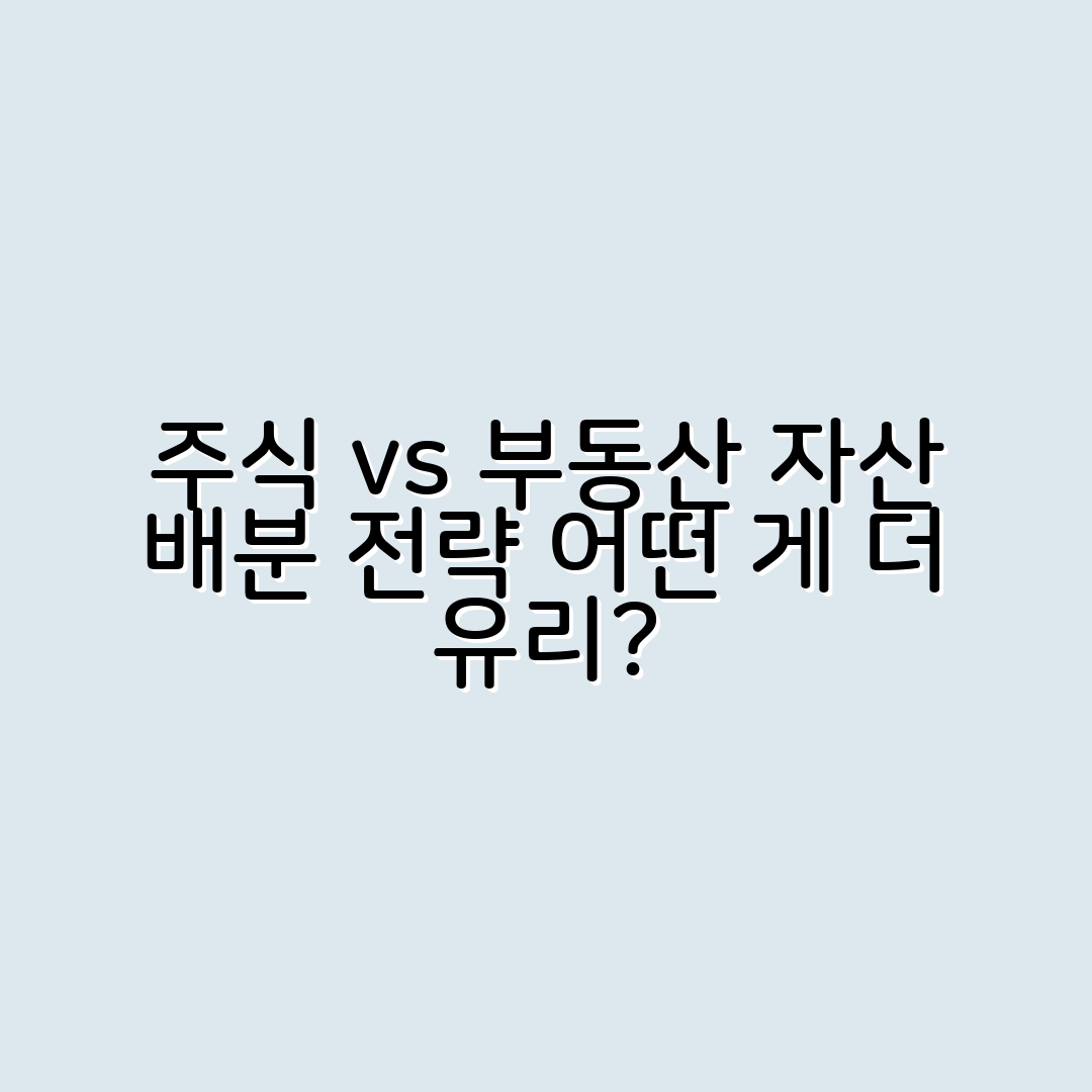✅ 주식과 부동산의 투자 특성에 따라 자산 배분 전략을 어떻게 조정해야 하나요?