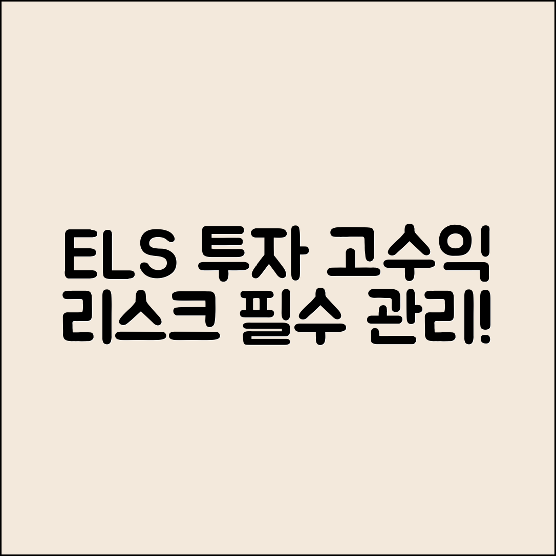 - ELS 투자는 수익 가능성과 리스크 관리가 필수